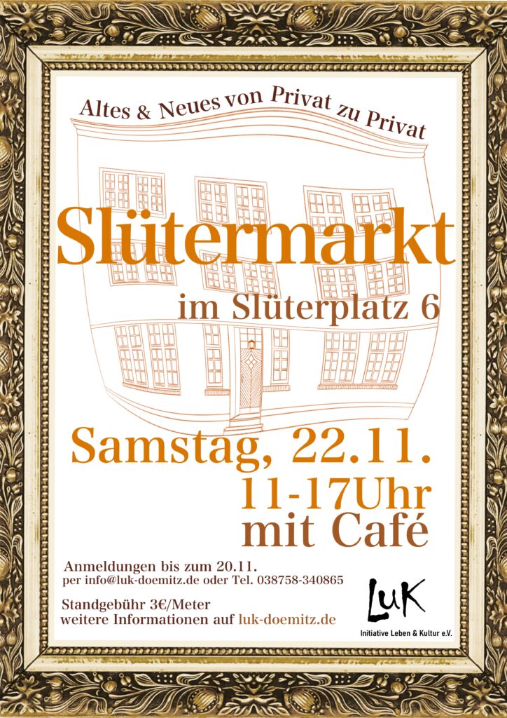 Altes & Neues von Privat zu Privat Wir laden ein zu einem bunten (Floh)Markt im Gebäude Slüterplatz 6 mit Schönem, Gebrauchtem, Handgefertigtem, Selbstproduziertem, eine attraktive Mischung von Dekorativem, Leckerem, Nützlichem … Slütermarkt! weiterlesen